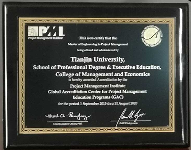 2022年,天津大學管理與經濟學部工程管理專業管理學學士學位項目(Bachelor of Construction Management)通過美國項目管理協會全球項目管理學位鑒定中心(PMI-GAC)的認證,有效期至2025年8月31日。目前,國內僅8所院校的相關學位項目通過了PMI-GAC認證。天津大學工程管理專業前身為1981年成立的“基本建設管理工程專業”和1993年成立的“國際工程管理專業”,后合并為工程管理專業。專業獲評“首批教育部第一類特色專業”,四次獲得住建部與英國皇家特許建造學會(CIOB)的聯合認證,本科及碩士課程曾獲得英國皇家特許測量師學會(RICS)課程認證。2019年獲首批國家級一流本科專業建設點,中國項目管理發展二十年成果獎。